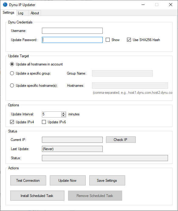 DynuIpUpdater.exe - Enter your Dynu username and IP Update Password